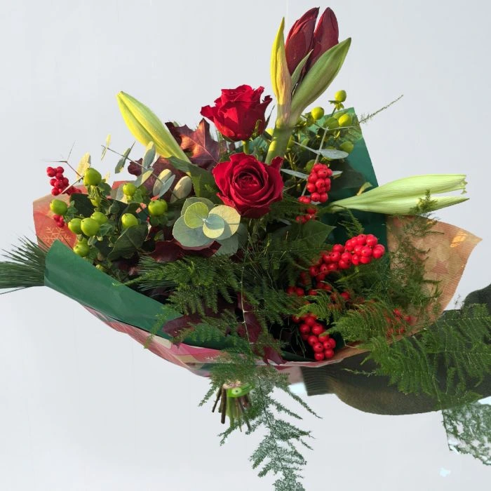 Wil je graag een warm rood kerstboeket bestellen? Dan zit je met het kerstboeket 'Christmas Dream' helemaal goed. Het is een prachtig warm boeket en met de handgestoken. Het boeket is niet alleen een genot om naar te kijken, maar het is tevens een feest om deze bloemen met de feestdagen te mogen ontvangen. De rode Ilex takken en de donkergroene kiefer in combinatie met de rode amaryllis in het midden maken dit veldboeket echt compleet! Wie ga jij met dit prachtige boeket verrassen?