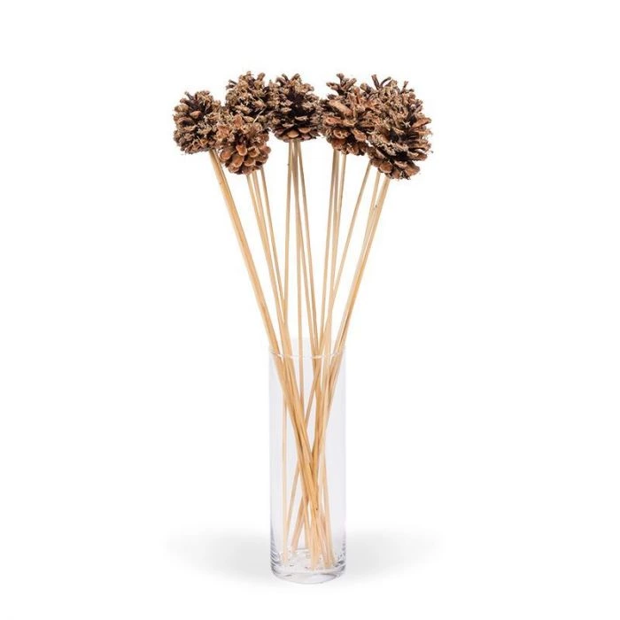 Dennenappels op stok met mos. Leuke kerstdecoratie voor in een boeket.