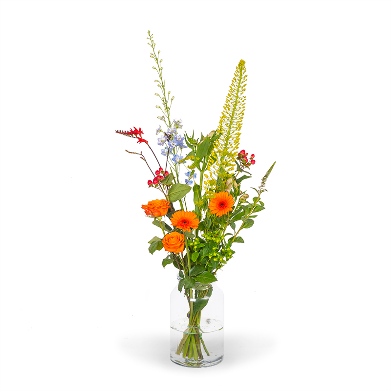 Als jij bij BloomGift een plukboeket besteld en je hebt zelf genoeg vazen in huis, dan is het verstandig om een vaas te kiezen met een hals die aan de bovenkant smal is. Dankzij de smalle hals van de vaas blijven de bloemen mooi rechtop staan. Doordat we weinig tot géén bladgroen bij de plukboeketten gebruiken is het moeilijk om de bloemen te schikken en ze stevigheid te bieden tussen het groen. De bloemen worden één voor één kruislings in de vaas gestoken, waarbij de wat langere en zwaardere stelen meer achterin de vaas gestoken worden en de wat kortere en fijnere bloemen voorop. Op deze manier creëer je de juiste symmetrie aan het plukboeket. Zo krijg je langzamerhand het wilde en nonchalante plukboeket waar je lang van kunt gaan genieten.