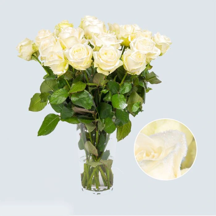 De roos Snowy Mountain is een prachtige witte roos, die behandeld is met een sneeuw topping. De kroonblaadjes van de roos zijn besneeuwd, waar de roos op een besneeuwde berg lijkt. Vandaar dat deze roos de naam 'Snowy Mountain' heeft gekregen. Echt een roos voor de winter en voor de feestdagen. Je kan deze winterse rozen bestellen per 20 en ze zijn van uitstekende kwaliteit. Wie ga jij van de winter met deze mooie rozen verrassen?